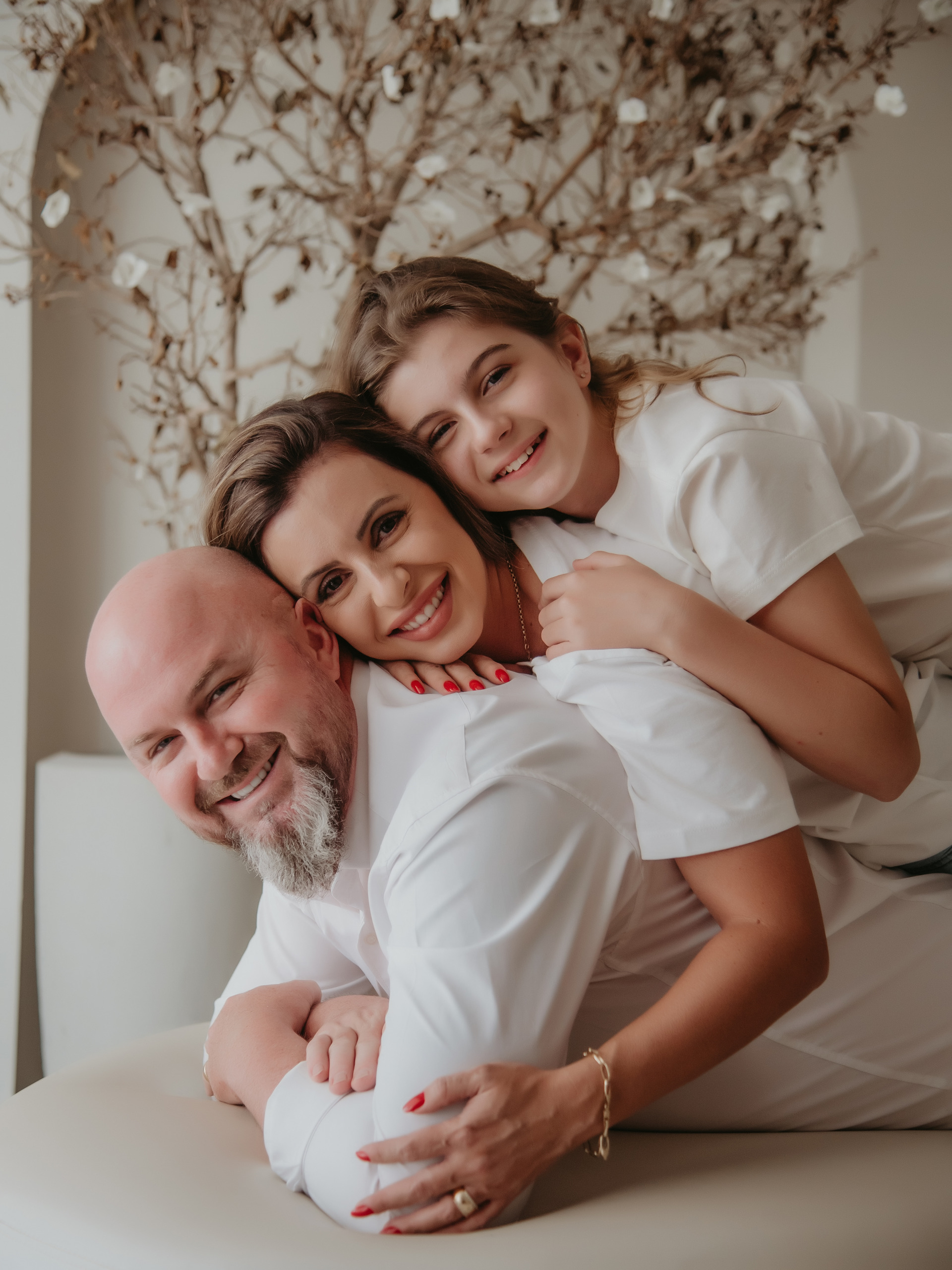 As fotos de família em estúdio tem uma proposta atemporal com fotos clássicas, que explora muita luz, cenário lifestyle, minimalista, que explora o estilo da família. As fotografias são bem abrangentes, serão fotografados todos juntos, somente pai e filhos, mãe e filhos, so os filhos e tambem fotos do casal