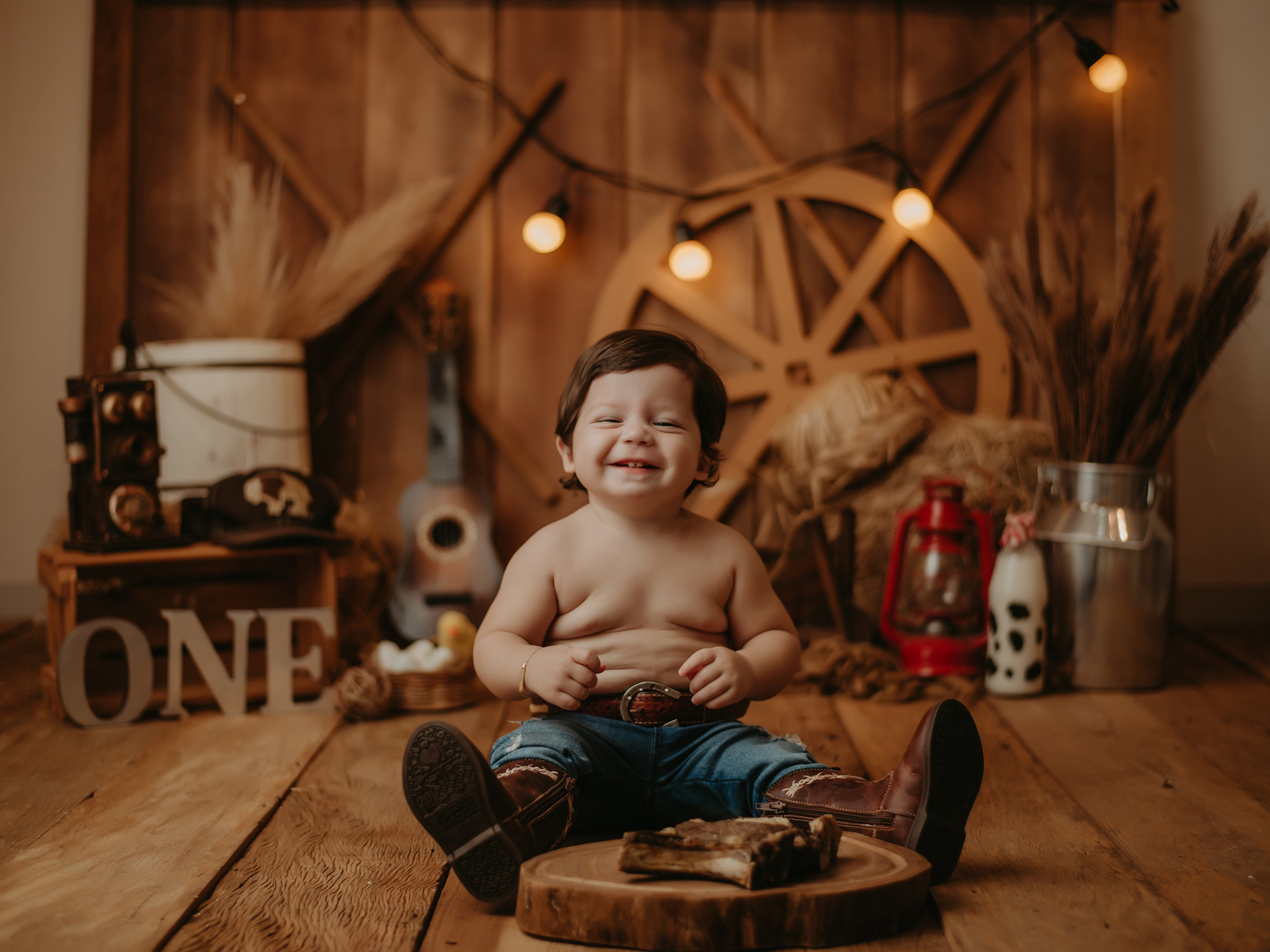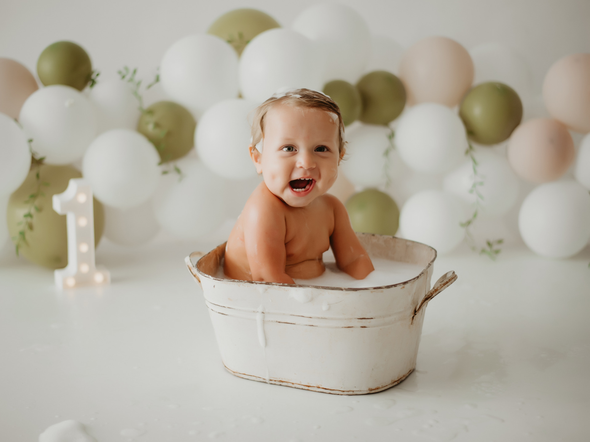O ensaio tem 3 momentos: inicialmente fotos do bebê sozinho no cenário, em seguida fotos do bebê com o bolo e por fim, o banho que é um momento que eles adoram!